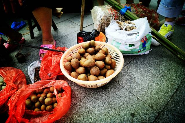 景区门口的小摊贩,到处有卖草帽、登山杖(就是竹子)和所谓的野生猕猴桃。价格么,建议大家以他们开的价格打个对折还价就是了。