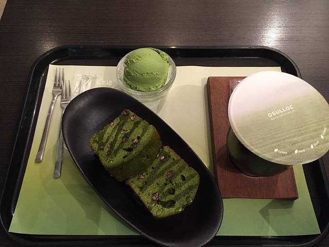 点了一份Green Tea Pound Cake & Green Tea Ice Cream以及一杯Osulloc Green Tea