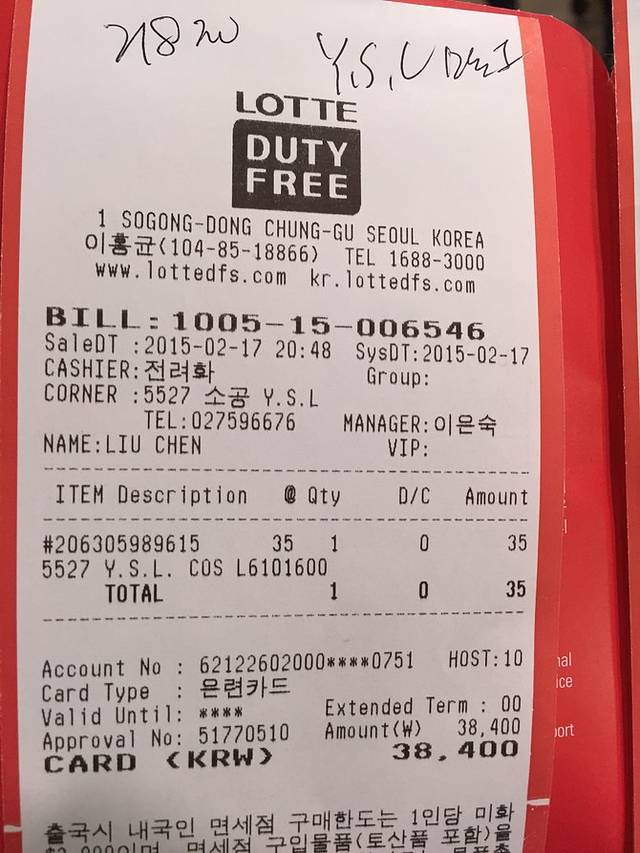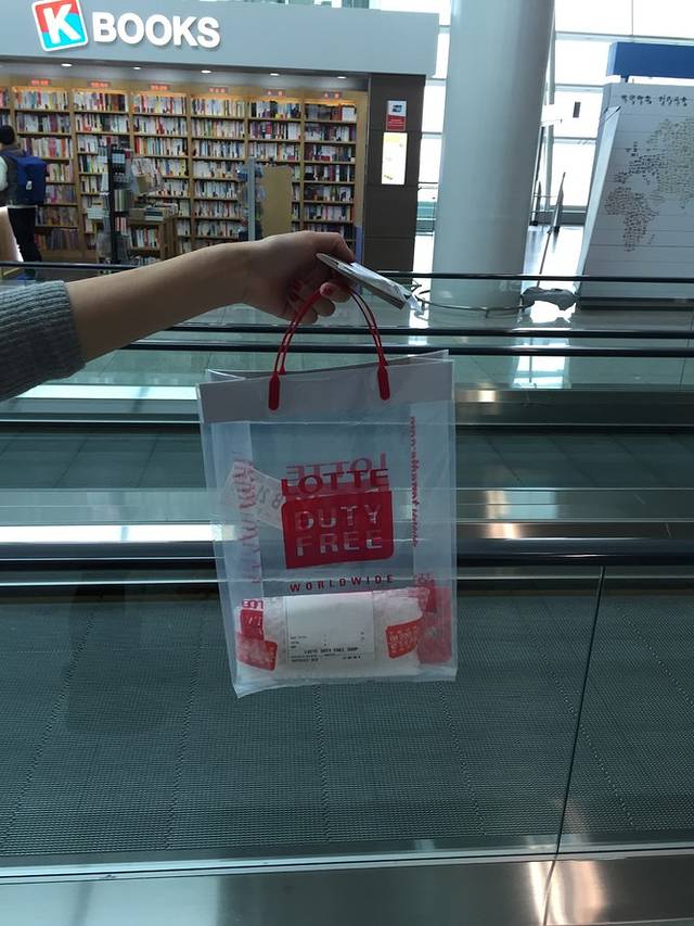 因为那天在明洞的乐天免税店买买买,买的韩国牌子都是现场拿货的,但是在那里买的欧美牌子(我买的YSL的彩妆,别的牌子不能100%确定)是不能现场拿货的,付款后,要拿着提货单,到机场拿货!所以买的时候要告知卖家在哪个机场起飞及航班号!