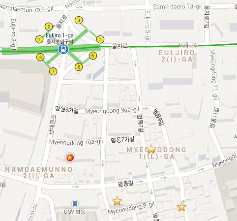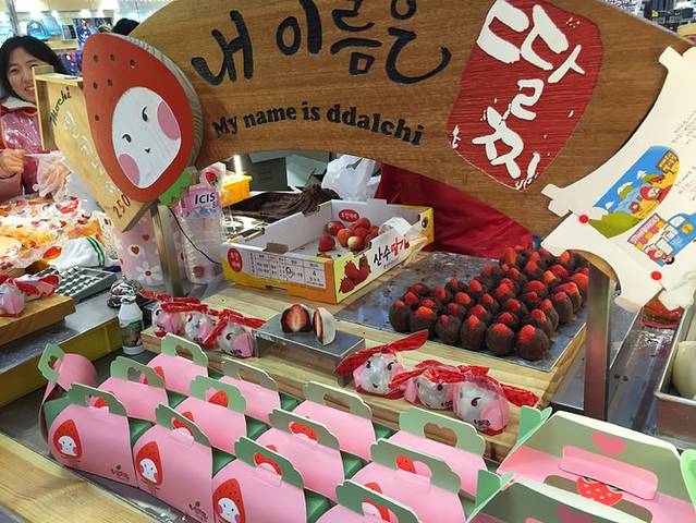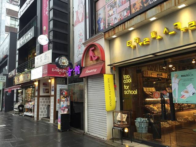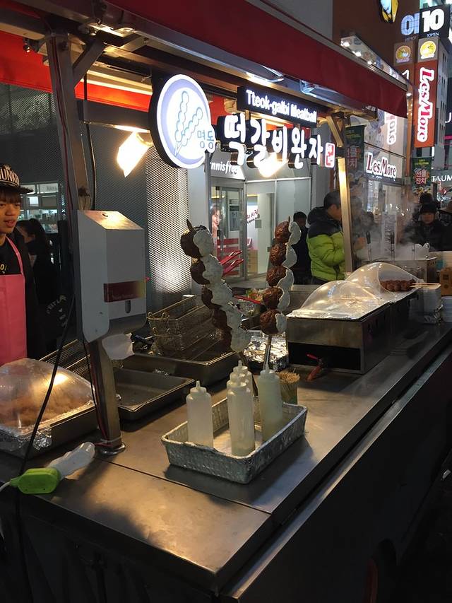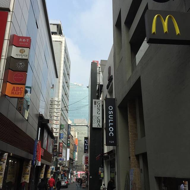 出酒店往左拐 走到路口再左拐 就是明洞步行街 各种美妆店 小吃 饭馆 服装店 要啥有啥!