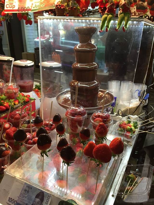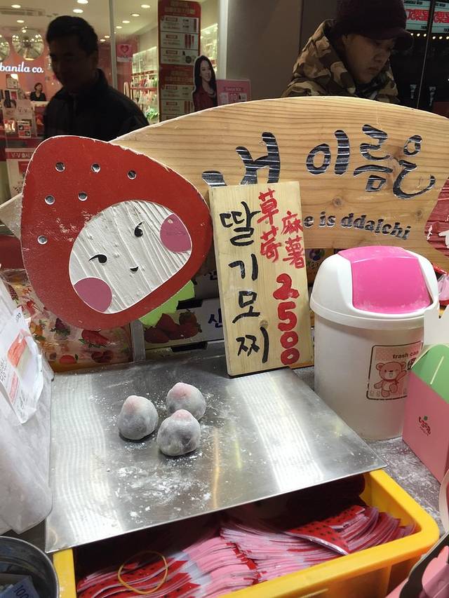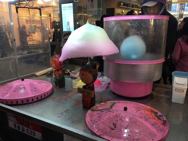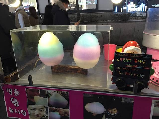 后来我们终于见识到了热闹时段的明洞步行街!各种街边小吃!目不暇接啊 梦幻的棉花糖!