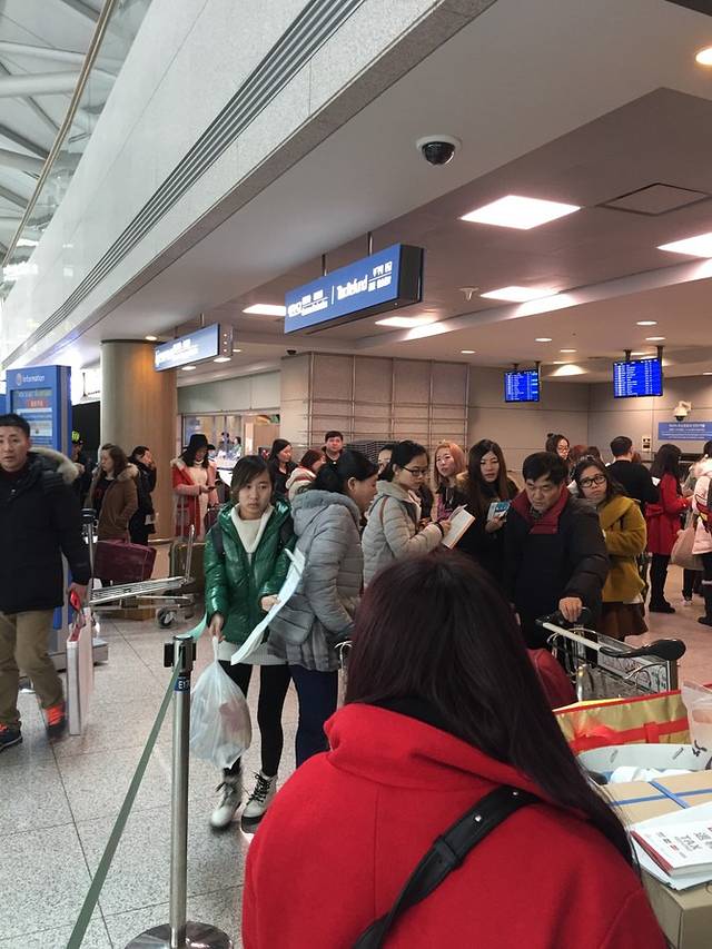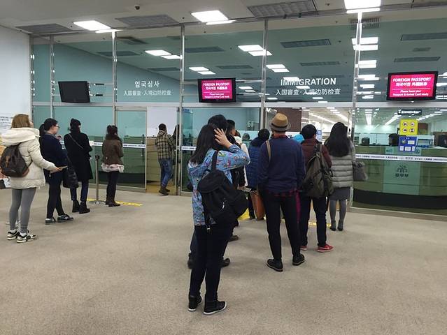 傍晚的飞机,下午弟弟开车送我们到首都机场,在机场 把之前订的移动wifi取了,工作人员讲了下如何使用和充电,过关,登机,一切都很顺利。到了首尔已经快半夜啦,入关的时候上交在飞机上填好的入境卡,入境卡竟然还问最近几天是否有感冒咳嗽等症状,搞得我还有点替我感冒了的偶吧担心(入乡随俗 此攻略内我打算管我对象叫偶吧了 请大家不要怕恶心 自备呕吐袋哈哈)。