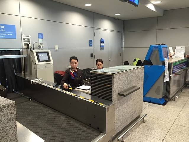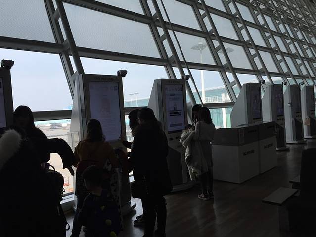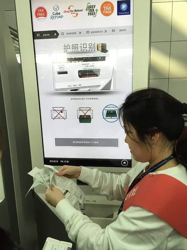下图是海关盖章排队的地儿 会说中文的挂着红条的工作人员会帮你点屏幕上的退税程序。所以不要自己操作,排队等工作人员小妹帮你!