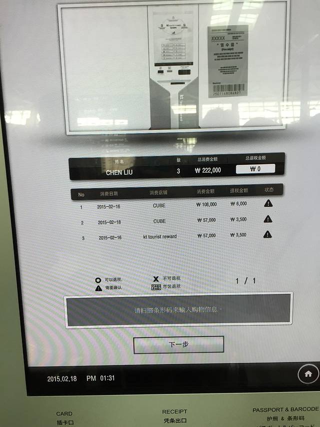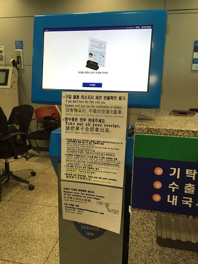 依然会有工作人员帮你在大屏幕上操作,你只需要给她护照和退税单,然后机器就会吐出退税的现金(韩币)啦!