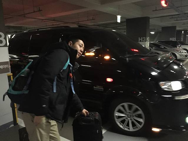接机大哥很热情,华人,跟着他走到停车场,一路感受一下首尔的夜景。