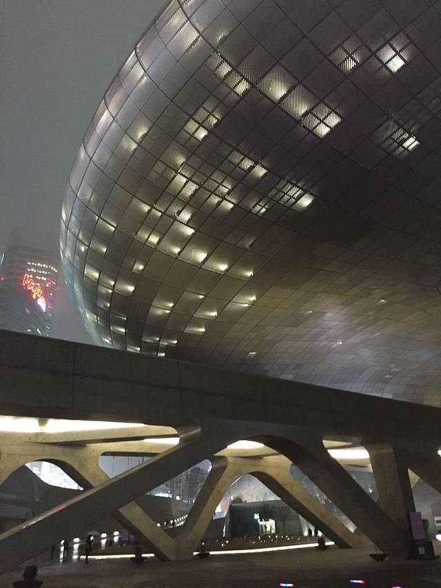 去地铁站的路上看到这个巨型建筑!东大门设计广场 很有未来感!cool~