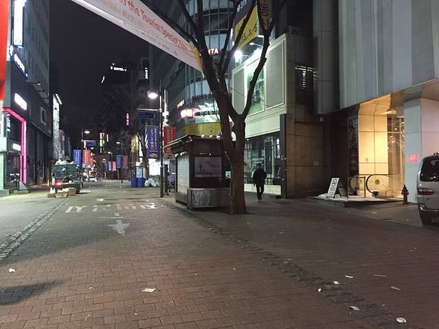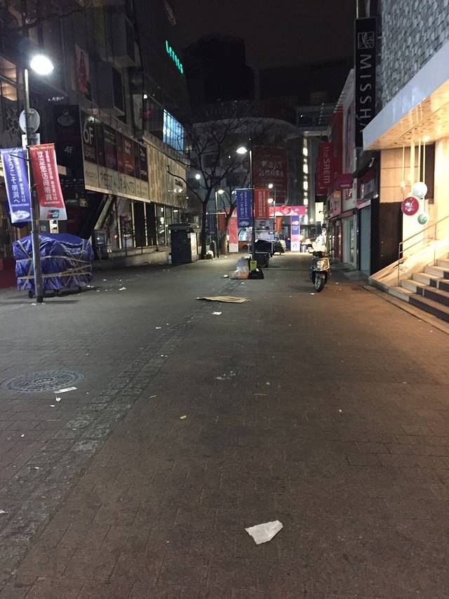 可惜由于我们到的太晚 好多店都关门了 看到的是满街垃圾 没几个路人 第一感觉是 这就是传说中的明洞?怎么这么冷清!还垃圾遍地!