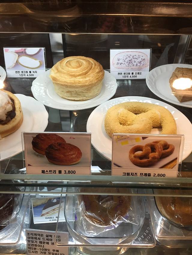 ,提前在穷游搜了搜明洞还有啥美食,搜到Osulloc的小清新绿茶店!吃了好几天泡菜味的各种东西,也是时候来个小清新的早餐啦!