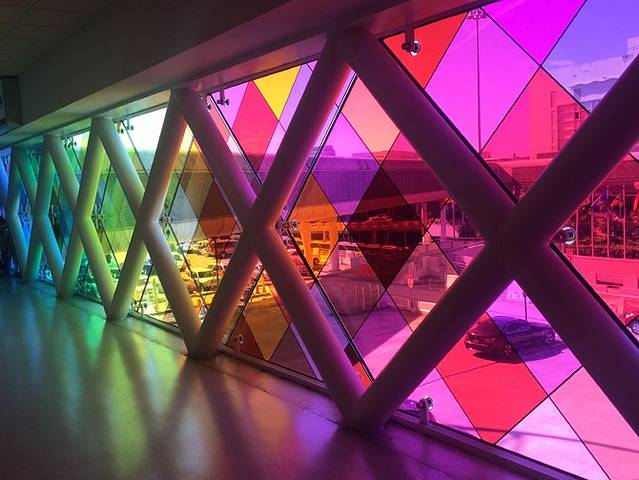 迈阿密机场的这面五彩玻璃墙几乎成了地标了 不不不 已经成为了地标了 大家似乎都会来一张定位照