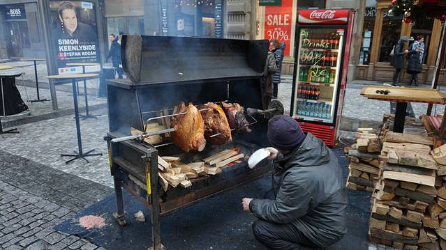 路上遇到的烤猪肘,捷克的烤猪肘跟慕尼黑的感觉不同,有股甜甜的蜂蜜味,推荐,但是一定要去饭店吃,这样摊位上的我没试过