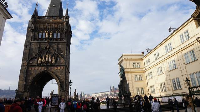 今天的任务是去布拉格城堡,城堡必须由布拉格城市这边穿过查理二世大桥过去。我们去的时候走的查理二世旁边的桥,想看下桥的全景,回来的时候再走查理二世大桥。