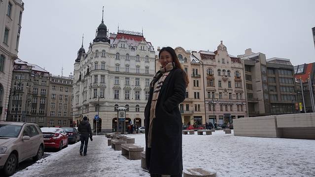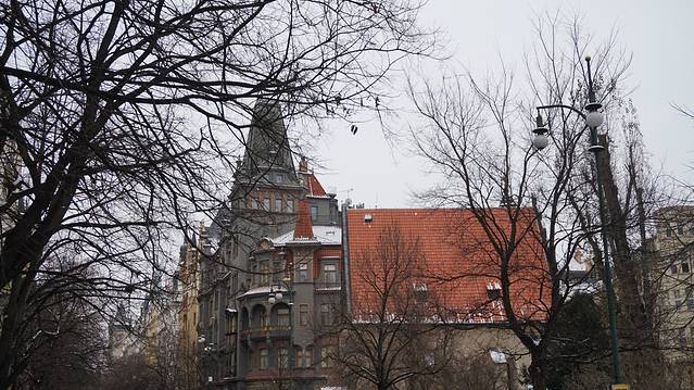 布拉格建筑最大的特色就是五颜六色,房子都是被刷成各种各样的颜色,给冬日的枯燥添了一抹色彩。