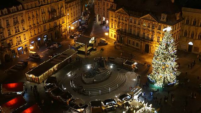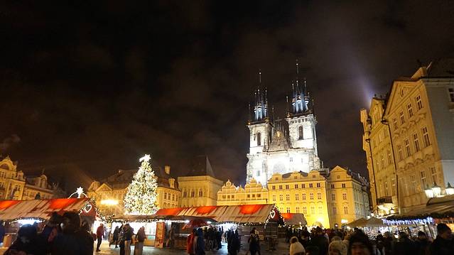 这就是完整的布拉格广场的照片啦,中间一个雕像,旁边是圣诞摊位,然后一棵圣诞树。蔡依林的“布拉格广场”,说的就是它咯