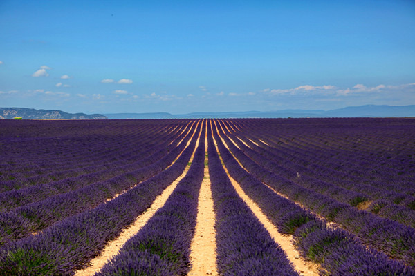 在Valensole的道路两旁,满是大片大片望不到边际的薰衣草田。