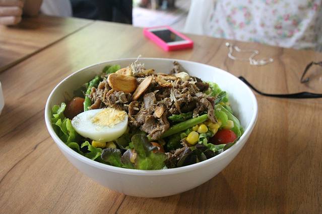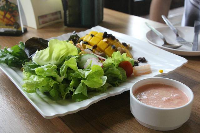 那天一直在下雨,所以天灰蒙蒙的。这家店The Salad Concept我看到有人推荐过,于是我们就进去试一下。总的来说价格略贵,但是沙拉做的真的很特别,主要特别在酱和搭配上面。