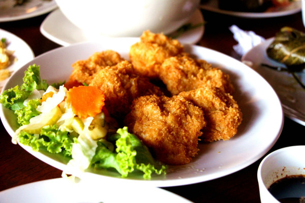 这一个是香茅炸鸡,好吃了呢,其实炸虾饼是一个类型的,也是不油腻,和蔬菜一起好吃~