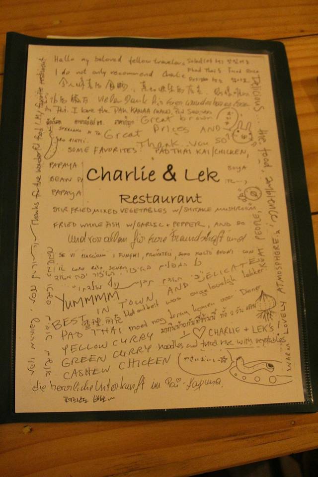 菜单上有着各国语言的留言,都是推荐的菜式和赞美的话~其实真的很有创意了呢~