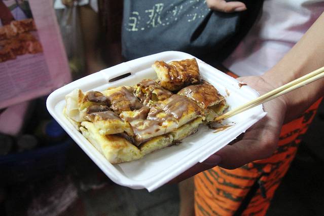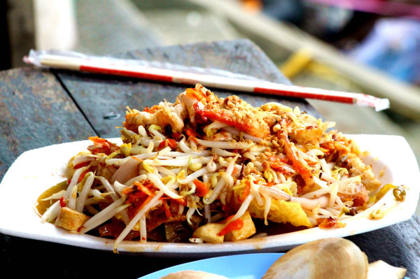 当然水上市场并不是全部在水上的,也有一部分小街道的市场是在陆上,拥挤的小街道上很多好吃的,当我看到的时候真的想每一样都试一下,同行的小伙伴多了的时候变可以每一个都买一点来试一下。