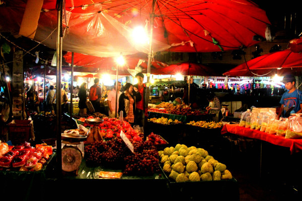 这里就是瓦落落市场啦,晚上九点多还很热闹,满眼都是好吃的水果。