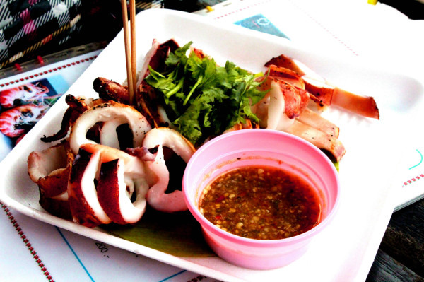 泰国菜出色的地方真的很多都是蘸料,比如说这个,鱿鱼蘸了酱料以后出色不少,但是鱿鱼本身有点硬,不好咬断。