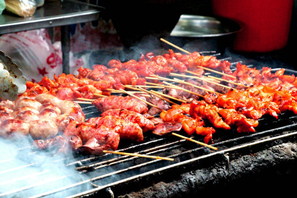 在市场到处都可以看到这些烤串,每一家的看起来都很诱人。