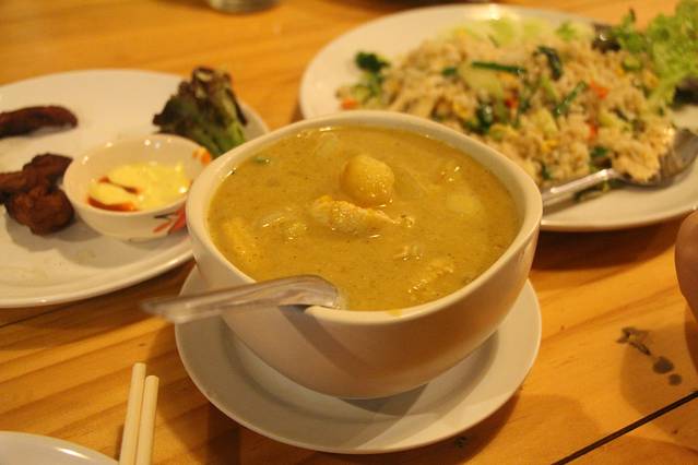 Jangmuang Boutique House距离吃货俱乐部介绍的Huen Phen很近,出门走五分钟就到了,我们吃了无敌咖喱鸡面Kao Soi Gai,很像广东话里面的口水鸡了呢~我觉得还好,没有到十分好吃的地步,不过咖喱还是浓郁的,不过就是只有几条面条而已。当然在清迈怎么能不吃香肠呢,我们试了这一家的香肠觉得一般般吧。清迈香肠我将在后面在特别推荐一家,也是吃货俱乐部里面强烈推荐的。