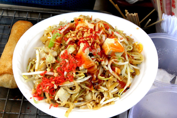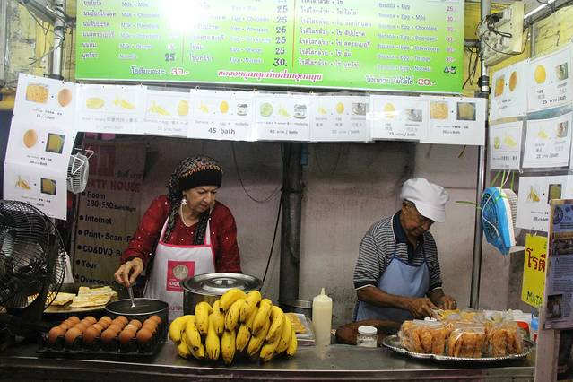 到达酒店以后我们已经饥肠辘辘了,看到考山路下面很多小贩在买东西吃,我们就毫不犹豫地叫了两份Pad Thai泰国河粉,这个是我们这几天里面吃的最便宜的Pad Thai,但是确实很好吃~上面的料都是可以自己添加的