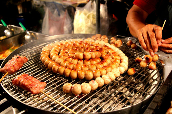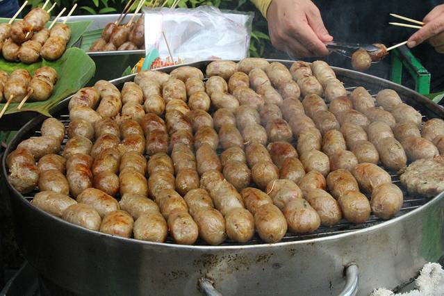 清迈香肠我真的吃了很多不同种类的,都有种奇怪的香料味,总之我们四个小伙伴都很不喜欢。但是这个依旧是吐血推荐。有辣和不辣两种,香肠被烤的焦香,里面是有类似粗的粉丝的馅和猪肉,配合适当的香料,真的好好吃。我更喜欢不辣的,小伙伴喜欢辣的。很便宜,所以可以买多几个吃吃~我们吃了好多个!