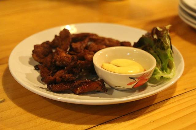 这个应该是炸猪肉吧我不记得是叫什么,现场炸出来的,很新鲜热辣真的超级好吃,点的酱也很棒,我们连续点了两碟才满足!