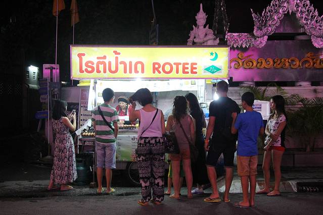前一天晚上从瓦洛洛市场回来的时候,在突突车上很巧合的看到了吃货俱乐部推荐的香蕉飞饼奶奶,真的好巧!具体位置我也不好说,反正就在塔佩门外麦当劳附近一条安静地大路的公园还是寺庙边上,不知道白天有没有,我两天去都是晚上,而且很多人排队吃了呢