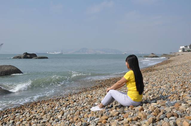 坐在海边