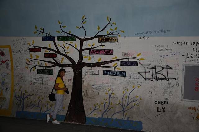 午餐完毕,出来就是“芙蓉隧道”,被我们无视掉回到湖畔,奇特的树根很漂亮,休息了很久去找“芙蓉隧道”。哈哈,原路返回。很长的隧道,各种涂鸦,写实的,动漫的,意愿的,期待的,科幻的,但是保持的不好,很多乱笔杂语。。。。。我觉得应该刷墙重新涂鸦了。不小心走到尽头就走出厦大啦。。。我和“神经病”都埋怨“李大锤”,你的导航就这么把我们导出来啦?走出隧道才有提示牌显示游客只出不进。当然,实际我们都走完了。接下来又被“李大锤”忽悠啦,坐公交车去南普陀的,我们竟然是从出隧道的厦大后门坐到了前门下车步行即可到达。没办法,我们又把拿他这导航仪说事。其实都是开玩笑的。