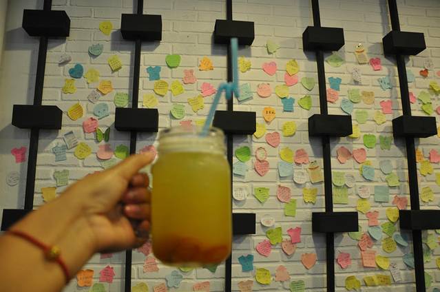 在大同路上路过一家“锅巴Station”,“神经病”点了芒果什么捞呀,我记不起来了,太腻,我的冰桔柠檬茶,很好喝,我喜欢的酸酸的,像茶缸般透明的容器怪怪的。