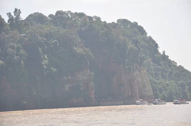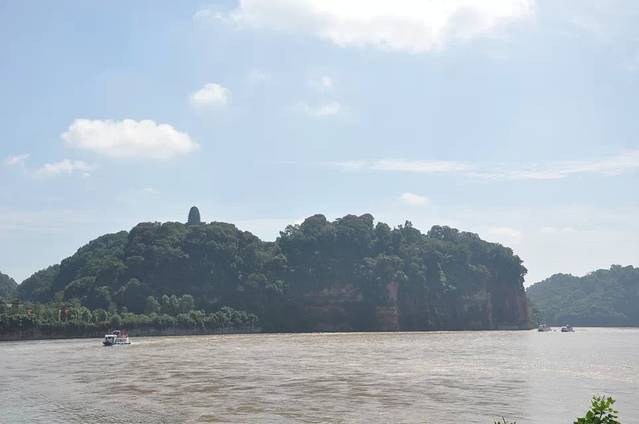 早上离开都江堰来乐山市。晴朗的天空过了成灌高速,就变得浑浊灰暗。成灌高速,是成都和都江堰的高速简称。成是成都,灌是都江堰。因为都江堰以前原名灌县。进入乐山后,天空又变得白云朵朵。很漂亮。到达乐山汽车总站乘9路公交车一块钱到小石头街,步行走到目的地。本来是一块钱渡船到江对面的,可是涨水了,不能渡江。在路人帮助下走到了乐山大佛江对面最佳观看点。我又被江边的桂花树吸引了,各种镜头拍。因为正午,太阳光反射,也看不清大佛。但是可以拍到阴影佛。那个睡着的佛。的确很形象。哈哈。乐山大佛,位于三江交叉口:青衣江,岷江,大渡河。这么有名的三个地方,我又一饱眼福了。那篇小学语文的《强渡大渡河》。哈哈哈。出来旅行,最开心的就是可以看到语文课本那些名山名水。