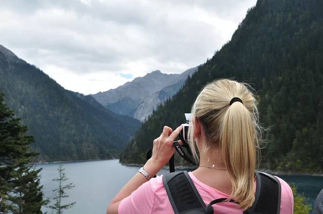也许是一个人害怕,也是单独行动没人拍照,不管哪样,我都没能自己单独出来,找了个同伴,只是九寨沟还是剩下我一个人继续前行了。真心觉得那句:宁缺毋滥。可能我太习惯自己一个人了,两个人的同行,对我来说的确很多不方便。没有自己的轻松自在。也没有美好的照片。这也是我愿意一个人走的原因。以前,总觉得旅行要拍照,现在我变了,觉得留住风景就好了。虽然我镜头里每一张的照片都有一个位置缺少个人物,很是遗憾。有的时候也会有不认识的游客,站在漂亮的角度,当我的临时的模特咔嚓一下。呵呵。没有侵害肖像权的意思哈。只是觉得挺好的。再去峨眉之前,整个行程都让我很开心,也是峨眉让我对后来毫无兴趣的,也是我从成都临时买票回家的原因。就像昨晚孙姐的魏先生说的那句话: