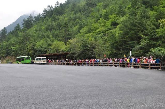 六点起床,九寨沟的天还没亮。带着行李坐车前往成都。外出旅行导游经常说的一句话:不走回头路!我这次虽然无导游,也给自己无形中导了一场不走回头路的自由行。来的时候是广元到沟的,回程是到成都。两个路程风景也大不一样。因沟里昨夜下雨,半夜才停。路旁的高山上,雾气很重,烟雾缭绕的很漂亮,但车窗做了挡箭牌,只能看不能拍。遇到的水也不是陇南的浑浊江面,而是清澈的奶白色。针叶林,沼泽地,小溪水,绿草地,应有尽有。沿途除了自然风光,还有人文景观~~~~镇江关,松潘县,茂县, 松平沟,汶川,中国羌族博物馆。一路听着塞着耳机听着歌,手指在键盘上不停的敲打着,和旅游群的小伙伴们“侃江山”。午餐在车上让爽歪歪和苹果打发了。实在瞌睡,小腿也疼了,就补充了一会。第二次睡醒,大家都在七嘴八舌说到了。我以为成都到了呢。正好有个老爷子和老太太说要去都江堰。我就兴奋的说和我一样。还一起下了车。可是后来,我才发现不一样。因为我原计划到成都,去都江堰青城山一天,再去乐山峨眉一天。结果我现在在都江堰市。好吧。误打误撞了。多花了二十车费(九寨至成都148,九寨至都江堰128)。