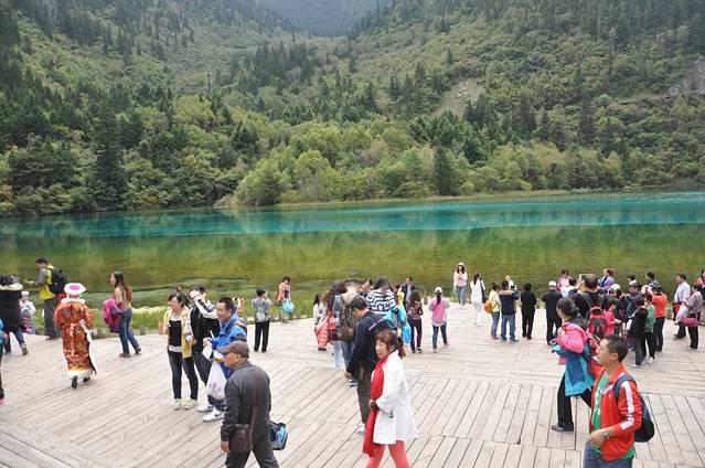 终于可以安静的坐下来了。昨晚闹铃定的6:00,我在5:59自己醒了。起床洗漱过到沟口买的220门票+90车费+10元保险。经过一天的游玩,真心觉得一点都不贵,花的很值得。进沟后就是排队等公交车,虽不是节假日人也很多的。每每来过一辆空车,大家都激动的不得了。而国民素质低下的素质更是体现的淋漓尽致。我就不懂了,排队上车怎么了,一个个都是挤,推,扛的,一窝蜂的堵住车门。我硬是被挤上去的。唉~~所有的旅行,都是这样煞风景!听着沟内导游的讲解,透过车窗,看着别样的风景,各种的期待。车是直接行驶到原始森林的,也就是说整个行程按照Y字型,从右侧日则沟,到左侧则查洼沟,到底部树正沟。走在树木笔直的原始森林,呼吸着每一粒的新鲜。箭竹海那特有色彩的海面,吸引了每一个游客的眼球。自由自在的鱼儿在清澈的熊猫海游荡着。顺着水势继续走着,会被迎面瀑布扑来的水雾渐渐侵湿衣服,为了抓拍美景,顾不上水雾对着瀑布猛拍,还要在这人流中拍到自己满意的角度,实属不易呀。很搞笑的是,原本挤不到边的我,当我现在观光区的时候,周围的游客都忙着整理衣物,哈哈,被我钻了空子,搞笑的是真个那里只有我一个人,似乎瞬间被承包的感觉,霸气的瀑布,大气的空白区,真是爽极了,正巧来个白皮肤,一起拍了合照。不得不说说珍珠滩。那个让你整个事业都是海滩,水从过道的上面扑来。经过过道留下去。那个场面真的很震撼。我原以为会再回来路过的,为了拍摄动态水,用了摄像,没用拍照。唉,好吧!失误了。其实珍珠瀑布就是从上游珍珠滩来的。这是第一次欣赏大瀑布,没有走到阶梯下方,就按耐不住咔嚓咔嚓。走到底部是因太阳光太强,拍人物都逆光了,有点遗憾。我依旧顺着瀑布,顺着水流摄像将整个动感的画面完美保存。走着走着,就是五花海了,看了景区常有拍照的工作人员,我驻足看半天觉得也挺好看的,但是没有让给我拍,觉得打印制作时加重色彩比起真实海景差了很多,夸大色彩度,丢失了原有的自然美。坐车到诺日朗中心服务区已经下午两点,怕一天赶不及,顾不上劳累加快步伐坐车到了长海。长海,怎么说呢,是九寨的最大的海域,也是其重点海域,我走下去看了,蓝蓝的水面,加上远处的高山,海边的流石,显得尤其平静。不巧,也逆光了。所以照片部分背景暗淡,部分背景正常。哈哈。我是不是回家该研究研究如果避免逆光呢?哈哈!停留几分钟,拍后就爬上步梯继续前往五彩池,一个不大的池子,却是游客最为集中的,长廊整整围绕一圈。真如他的名字一般五彩缤纷。很久不用的词语~~五光十色,也在我看到池子的一刹那印在脑海。坐车后看到的就是上季节海和下季节海。他们因季节改变海面水域变大或变小得名。因正直九月,很容易想到上季节很少水,下季节的水量还可以。很普通的两个海,不用下车游玩,车上简单看下就好了。诺日朗瀑布,又一个让我震撼的场面,真心觉得,看到的都是各种富饶。沿着一路摄像来的,他的位置阳光不受不影响,所以加紧拍了几张人物景色,当然,让游客帮我拍的。哈哈哈。看看手机还有两个小时到六点,就彻底的走了一遍。树正沟的犀牛海。老虎海,树正瀑布,我都是沿走道一路风景观赏完毕。所以呀,回到沟口脚底好累好累呀。沟口到住处又是八百米。大步走起来吧!!没办法,谁让我这么爱看风景呢?很开心的一件事,看到卖苹果的啦。那个外形,超级喜欢,就是我最满意的,当然还有他是青皮,我知道,肯定好吃。10块钱3斤也不算贵,但我还是给老板搞价3块钱一斤未果后,换了一家买到了,还有九寨特有的脆红梅,爱吃李子类的我,怎会抛下好机会呢不是。虽然已经走不动了,提着苹果的力气还是有的嘛。哈哈哈。回到住处,吃了一下,果然,好好吃的苹果,我吃饭最好吃的了。当然,人家是青皮,脆脆的,酸酸的,真是棒极了。晚饭还是青稞面,第一次在外同样饭吃两次。做饭的小姑娘18岁,给我煮面还特意放多了。怕我吃不饱!呵呵。临走时和她拍了张合照。天空黑了,下起了下雨。回到住处写我的这未完待续的日志。原本两进沟的我,一天就欣赏完了。但觉得,真的很好的旅行,在我的旅行中,觉得最好的一次。很美好的一天。九寨这行,是要结束了,明天成都。