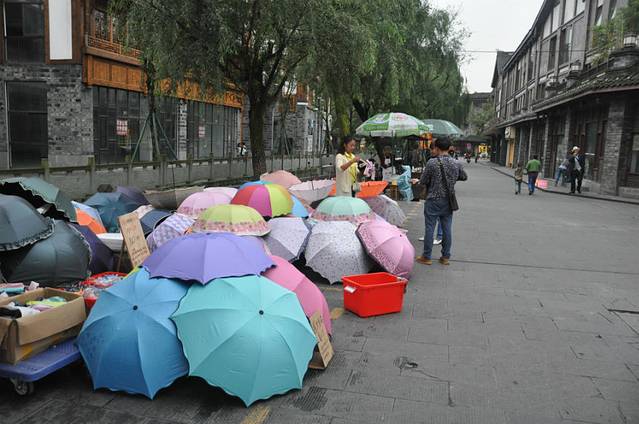 下车就被清新的桂花香陶醉了,欢跳着到路边,取我的行李箱。脱口而出:我太喜欢这了,真干净呀。十字路口对面就是很大的标志建筑,近视眼的我看不清,依旧拿出手机速拍啊。后来老爷子说,都江堰的“马踏飞燕”。两块钱的公交车到达客运总站。问路边住宿要30块钱,吓得我都不敢住。后来找了别家的,看了不怎么合适,最后在一家满意的住下了。房价低的像做梦。老太太他们的双人间,我得单人间,最终90拿下。而我的,老爷子说让我出40就好了。好吧!40!头一遭住这么经济实惠的地方。安置好行李,路口7路公交到达都江堰景区已是下午四点。离景区关闭还有两个小时,我们决定明天进园,今天走外围的南桥。天下免费的午餐就属南桥了。不需要门票,还有古镇欣赏,又一次让我觉得丽江古城太商业。江水涛涛,很是漂亮,记忆最好的方法当属录像喽。每次嗅到空气中的香辣,都激起我强烈食欲和对川辣的好奇心。中途,10元3串的烤鱿鱼看着不错买了一份,味道真是棒极了。如果我那些小伙伴们也能吃到,肯定会和我一样超级爱的。纯色的雨伞遇水变成美丽的花型图案,像魔术一样神奇。成排的桂树挂满了淡淡的鹅黄色桂花,香味弥漫整个空气。两个小时走完所有的可观性景区。大叹到:来的太对了,自由行来的更对了,如果跟团。肯定不会有这样的收获的。
