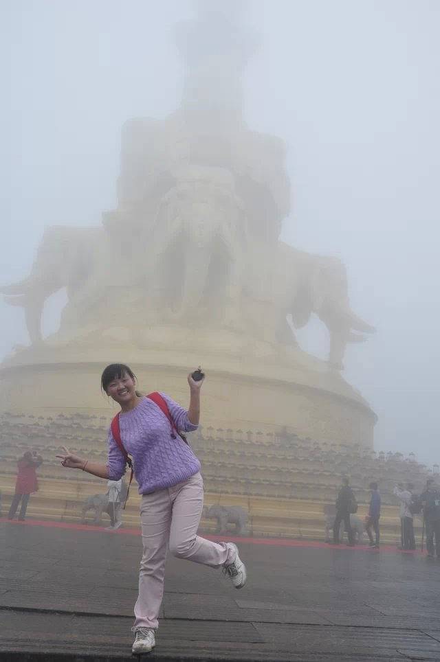 徒步走到缆车半个小时,已经八点多了。想着日出也没戏了。我决定走路上,或者坐下来,或者都徒步,剩下65上行费用。这次都没法说,景区连山上路标都没有,我问的一个二次来的游客告诉我道路。其他人都去缆车了。我走了半个多小时,没有一个人。终于过很有来个一个人,烟雾也大,我也近视,看不清,也距离十几米。顾不上熟不熟,我就喊了句:终于看到人了。呵呵对方还回应了“我上来了”。后来我们就一直走到山顶,什么金顶,烟雾缭绕的佛爷没有,等天空淡去有一部分可以看清。很累,但我还是爬上去了。九点多吧,云海时有时无的。太阳似乎也很害羞,想出来有出不来。日出又没了又无缘了。下山的速度更是惊人了,一路没停就下来了。同行的南京哥建议我坐他们车子下山。我同意了,可是住家却告知我,要自己去取行李。没人送。。。我坐车,就要走公路一段,石板路一段。一个多小时到不了。如果不坐,要么50下去。要么继续走下去。我选择一起走了。。。对这里没什么景色彻底失望了。商务车下车,我走了十分钟,有个摩托车,我挥手时宜示意,停了下来带我上到车站,这次我特意看着时间,走的很着急,20分钟到住宿家里。带着行李坐车回万年寺。大巴车是 二十万云南出发。我问了其他人,要40的私家车被窝搞定20。还是个斯柯达。不错,,专用,买票去成都要50要三个多小时。好吧