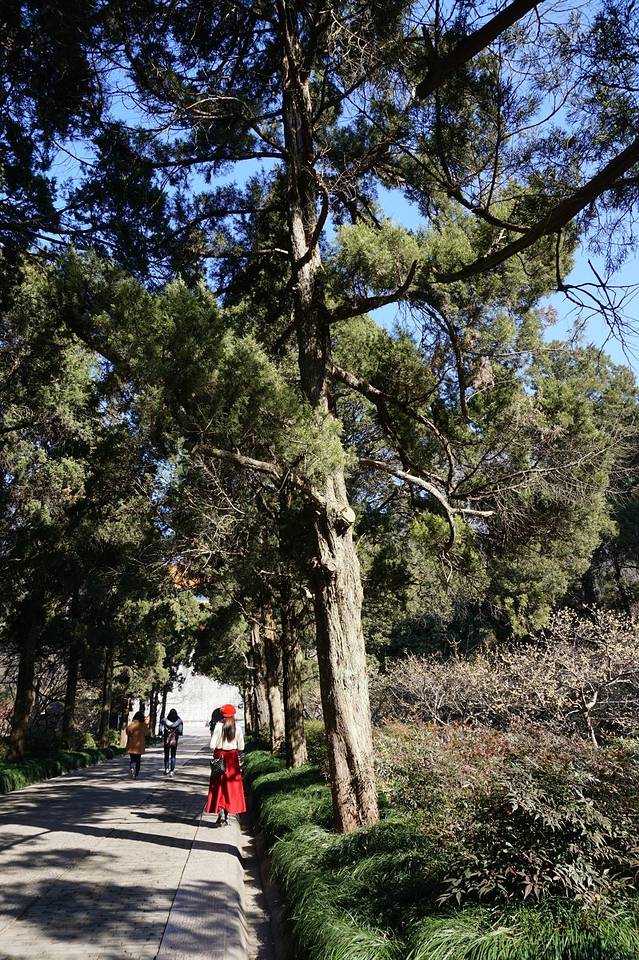 然后我们是步行去明孝陵的,明孝陵其实不大,但是那条通往古楼的小隧道很有感觉,路两边的古松和风一吹来就散发清香的腊梅。我们因为太闲了,所以乱走,走到了一处城墙边上,沿着城墙边一直走啊走,半天没上来,不过遇到了好多小动物,特别是一些大型的鸟,在草丛里窜来窜去的,很有趣。然后下山往中山陵走,其实走路挺远,只是走惯了我们没什么感觉,可以乘坐10元一次的景区车到达中山陵。我们当时去到时已经接近10点办,人多,不过还算可以,还没多到人挤人的地步,一步一步登上山顶也是挺励志的人生了,不过我个人恐高,往下看阶梯是小怕。中山陵设计还是挺神奇的,往上爬时只看得到阶梯看不到平台,往下看时又只看到平台看不到阶梯。及其怒灵堂的时候千万注意不能拍照而且别议论。记得中途有孩子在文物上乱动,爬上了明孝陵的那只乌龟上去了,我直接制止,后来想想,没被打算庆幸,人家爸妈就在边上。
