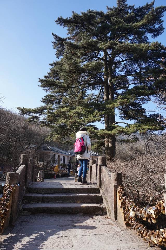 早上6点30就起床了,附近就有早餐吃,然后7点20分就要到东岭换乘中心,与客栈相距300左右,走路5-8分钟,坐车上山,票价19元一人,半个小时到40分钟打到慈光阁和云谷寺,云谷寺比慈光阁要靠里面,走到云谷寺自助取票口,二维码扫描出票,这是提前一个星期的票,自助取票快速,即便是排队也是很快的。然后排队坐缆车,缆车排队时间较长,用了十几二十分钟,和一同乘坐缆车的一家子也很好聊,互相帮忙拍照,8-11分钟左右就到了白鹅岭,从这里开始一个一个景点地去玩。其实路线是多变的,所以最好前一天晚上就告诉老板你们的计划,老板会推荐路线给你,免费的。当时去的时候雪还没化,除了刚上山有点冷,后面的全程都是只穿三件,一件打底背心一脚毛衣再加一件小外套,这是天气好的原因,一面是雪一面是太阳。沿途看到许多没见多的鸟、松鼠和猴子。非去不可的是飞来石,超壮观。爬山途中还能遇到各个年龄层的同道,有中年的爱开玩笑的“说相声”的,有安静的尼姑,有恩爱互相扶持的退休夫妇,一边聊一边走,互相指引路线,过程很有趣,山上很刺激,但是下山很凄凉,因为体力好也拯救不了我的脚,一路哇哇叫着下山,倒是那个安静的尼姑,让我们的心平静不少,全程都是笑笑,我们休息她休息,然后我们哇哇叫说笑她也是安安静静地在前面走路,不插嘴也没有显得不耐烦,感觉她在前面很踏实,最后也是安安静静地跟随她的脚步下到了慈光阁。然后坐车下山回酒店再坐车回黄山市区,吃完饭后打的30元。这是所有旅游点中唯一一个即便是滴滴打车也不达标的牛市。黄山机场很小,飞机基本晚点,机场也没什么吃的,我们的行李比较大,但不重,这边说是要托运,我就直接跟他说了,广州上海都能自带,这边不应该说是要托运的,后来就没让我们托运了。而且这边的机场,是少数机场中不支持自主值机选号的,只能在飞机起飞前一个小时左右吧,会通知你排队值机。请做好心理准备。