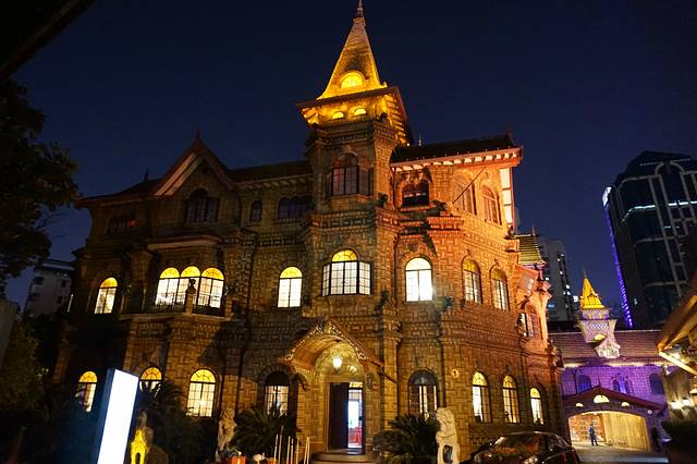 (人民广场-马勒别墅)回来是晚上了,我们也不愿意再步行去坐公交,直接滴滴打车15元到马勒别墅,这别墅配上灯光真的挺好看。在坐车时可以观看一下上海的夜景,还不错。然后我们在附近的“很高兴遇见你”据说是韩寒开的餐厅,吃完才听人说的,东西一般般吧,价格中等。