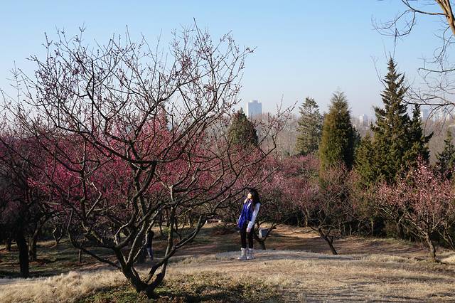 (鸡鸣寺-中山陵)步行至鸡鸣寺站,坐201路,中山陵停车场站下,步行。大概去到的时候是差不多9点吧,买的联票,一百元一个人,可以提前在网上预定,便宜几块钱。然后我们先逛的是梅花谷,确实很漂亮,而且可能还算早,没什么人,有的都是一些摄影爱好者,有拍花的有拍鸟的,很安静,不过梅花有些还没开,所以全景没有网上看的那么漂亮,但是也很美了,到处是鸟叫声,地上的草都还结着霜。