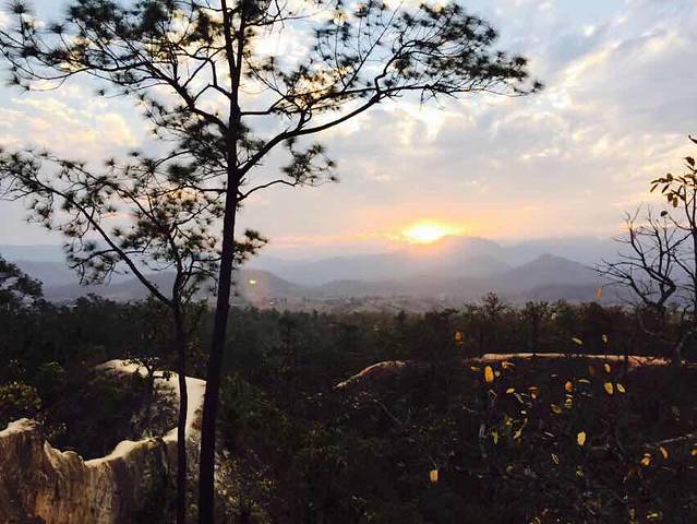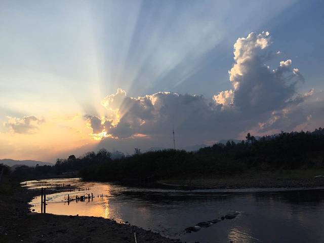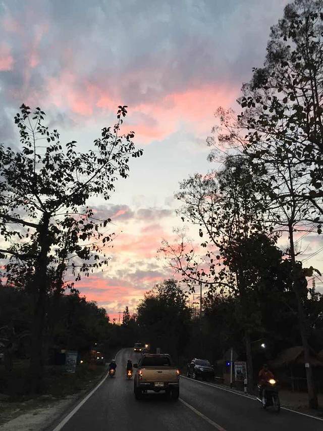 回来的路上经过桂河大桥,恰巧赶上太阳落山,这无疑是给我们在Pai县最后一晚的最美的礼物。在不同的地点又一次欣赏到了这美到让人叹为观止的晚霞,