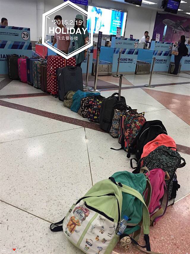 晚上九点五分的飞机飞去曼谷喽~据说!曼谷比清迈热多了! !看看我们八个人有多少行李💼👜👝👛