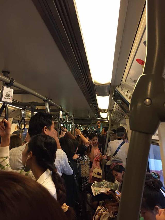 终于到了轻轨口,一人31泰铢,突然感觉还是北京的地铁便宜呀,轻轨上的👱👦👧👨👩👴👵也是乌央乌央的。