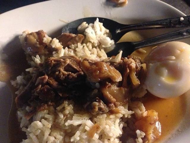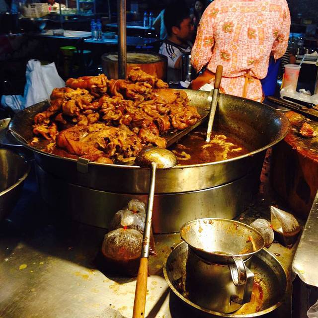 从夜市回来我们一行人直接去了凤飞飞猪脚饭的摊子,离住的地方特别特别近,走路一两分钟就到了夜市摊,因为赶上周日夜市,好多摊都没出。美女摊主会说些中文,要了猪脚饭和猪肠,大晚上的罪过罪过(¬_¬)