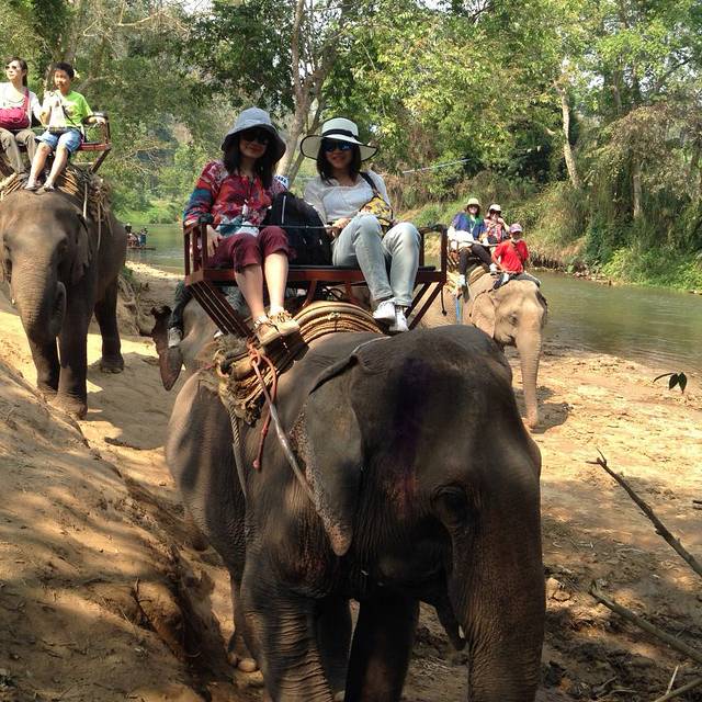 大象营里的大象天天在这绕圈拉客真心累的慌👿训象的小伙儿们一个个的直接坐在🐘脑袋上,也真不怕掉下去。坐着大象跋山涉水的一会儿上一会儿下,下坡的时候整个人都要掉下去了快,太刺激😆