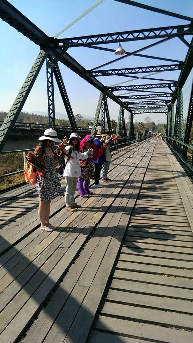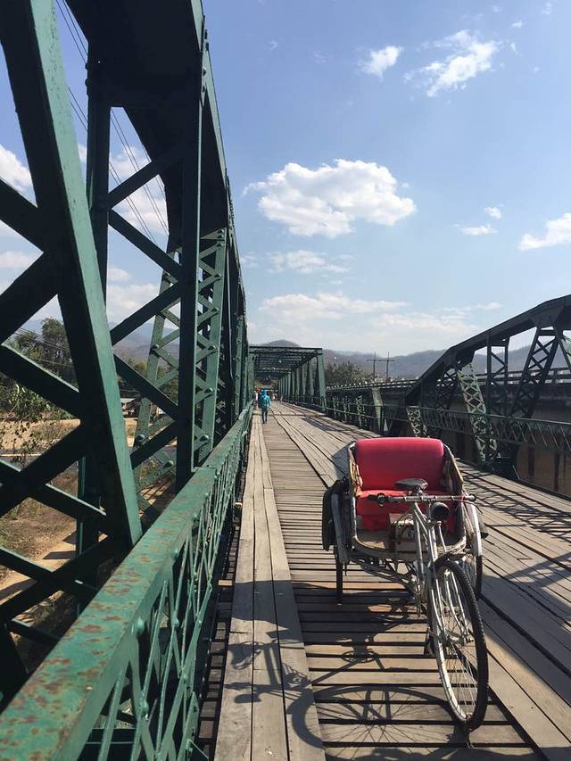 桂河大桥,由美国钢铁公司搭建的,现在只允许人通行,在旁边又建了座桥让车通行。