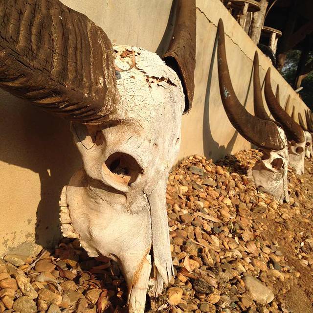 与白庙截然不同的黑庙,全是纯木雕,给人的感觉更接近庙的字意,(更黑暗)有很多的骨架和整张的鳄鱼皮和蛇皮。